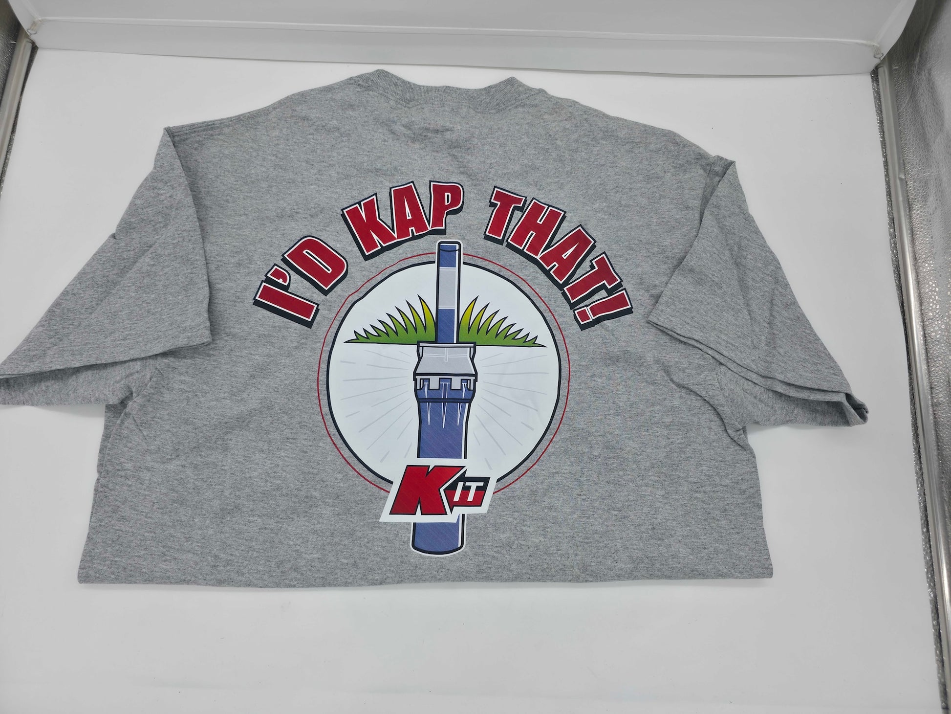 Rep your favorite brand in comfort and style with the “I’d Kap That!” K-IT Logo Tee. Made from soft, durable cotton blend fabric, this shirt is perfect for everyday wear — whether you’re on the job or off the clock. The front features a clean K-IT Products logo, while the back proudly displays the bold “I’d Kap That!” graphic design that makes a statement wherever you go.